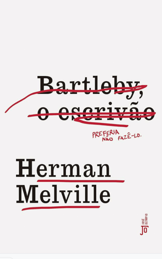 O melhor e mais fascinante personagem da literatura mundial, para mim, é BARTLEBY, de Herman Melville. O funcionário de um escritório de advocacia de Wall Street, em New York, que só diz: “Acho melhor não”, se recusando a executar qualquer tarefa, num mundo agitadíssimo, de gente que só pensa em trabalho, sucesso e dinheiro. O contraponto a uma sociedade em ação permanente, viciada em trabalho. “Me chamem Ismael”, é a primeira frase de “Moby Dick”, a monumental obra prima de Melville. “Prefiro não” poderia ser a introdução de “BARTLEBY, o escriturário, com quem me identifico, desde sempre.